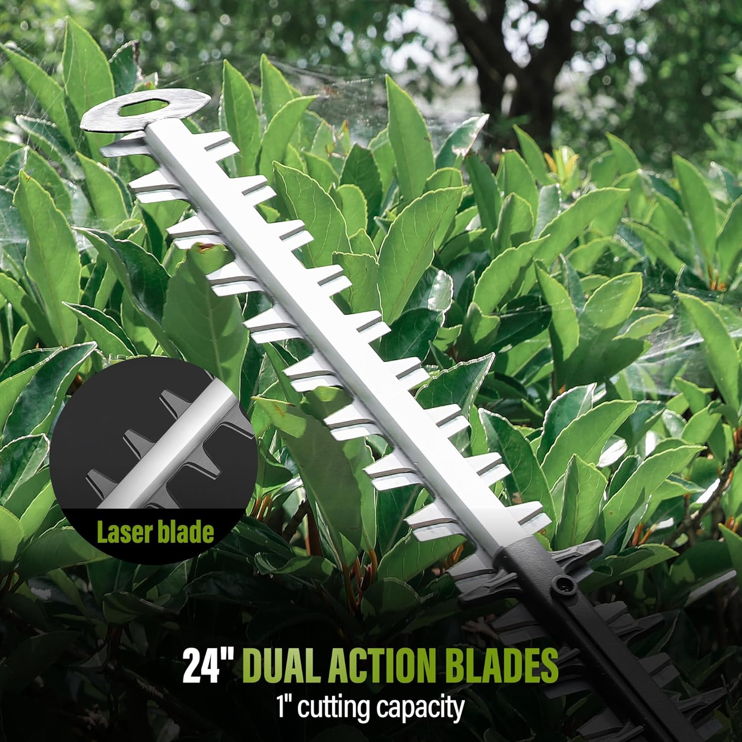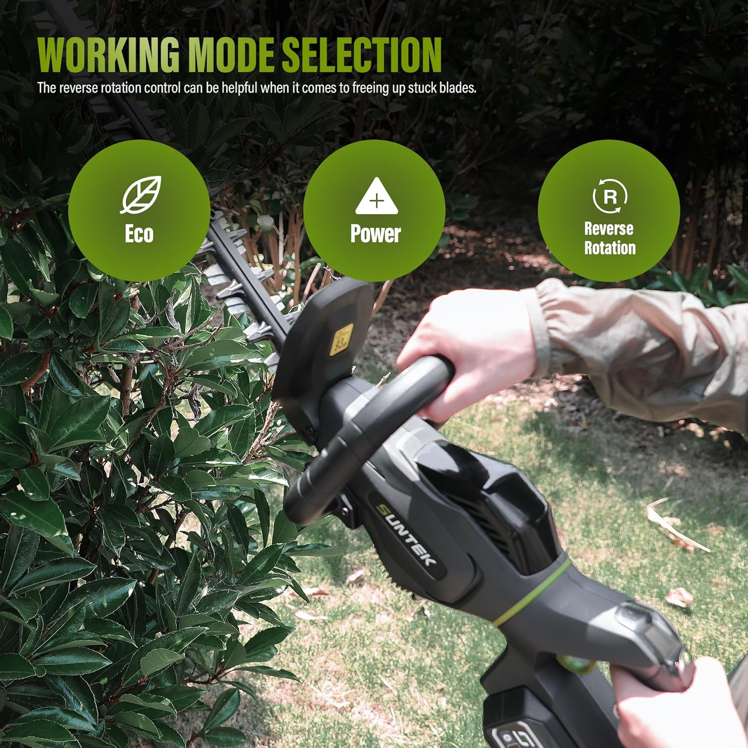 【Prestazioni elevate】Questo tagliasiepi a batteria è dotato di un motore DIGI-Brushless per una maggiore potenza ed efficienza. Il tagliasiepi Suntek da 61 cm eccelle nel tagliare più cespugli in una sola passata, migliorando la portata e la produttività grazie alle sue lame resistenti e temprate che possono tagliare senza sforzo rami fino a 2,5 cm di spessore.