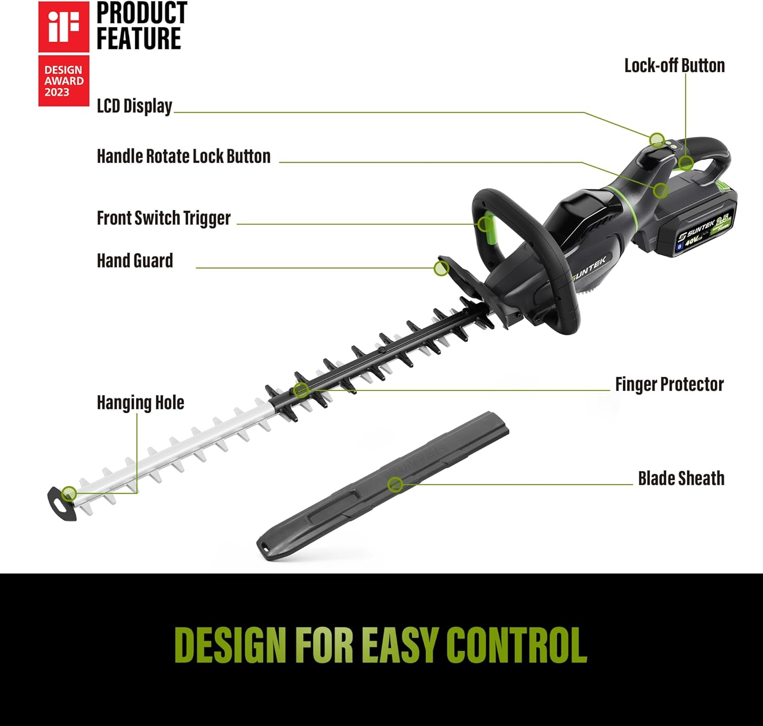 【Prestazioni elevate】Questo tagliasiepi a batteria è dotato di un motore DIGI-Brushless per una maggiore potenza ed efficienza. Il tagliasiepi Suntek da 61 cm eccelle nel tagliare più cespugli in una sola passata, migliorando la portata e la produttività grazie alle sue lame resistenti e temprate che possono tagliare senza sforzo rami fino a 2,5 cm di spessore.